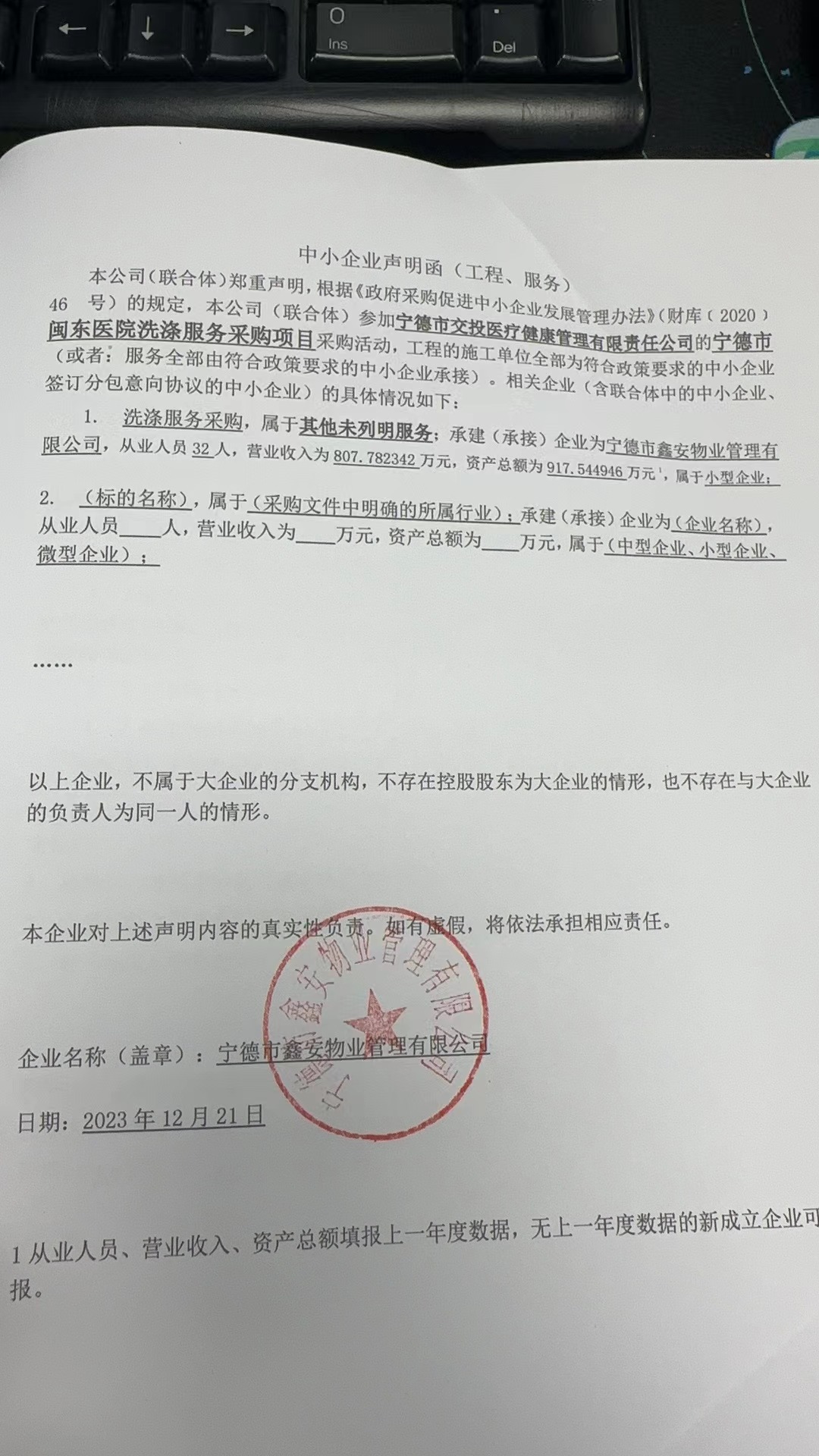 供應(yīng)商名稱:寧德市鑫安物業(yè)管理有限公司