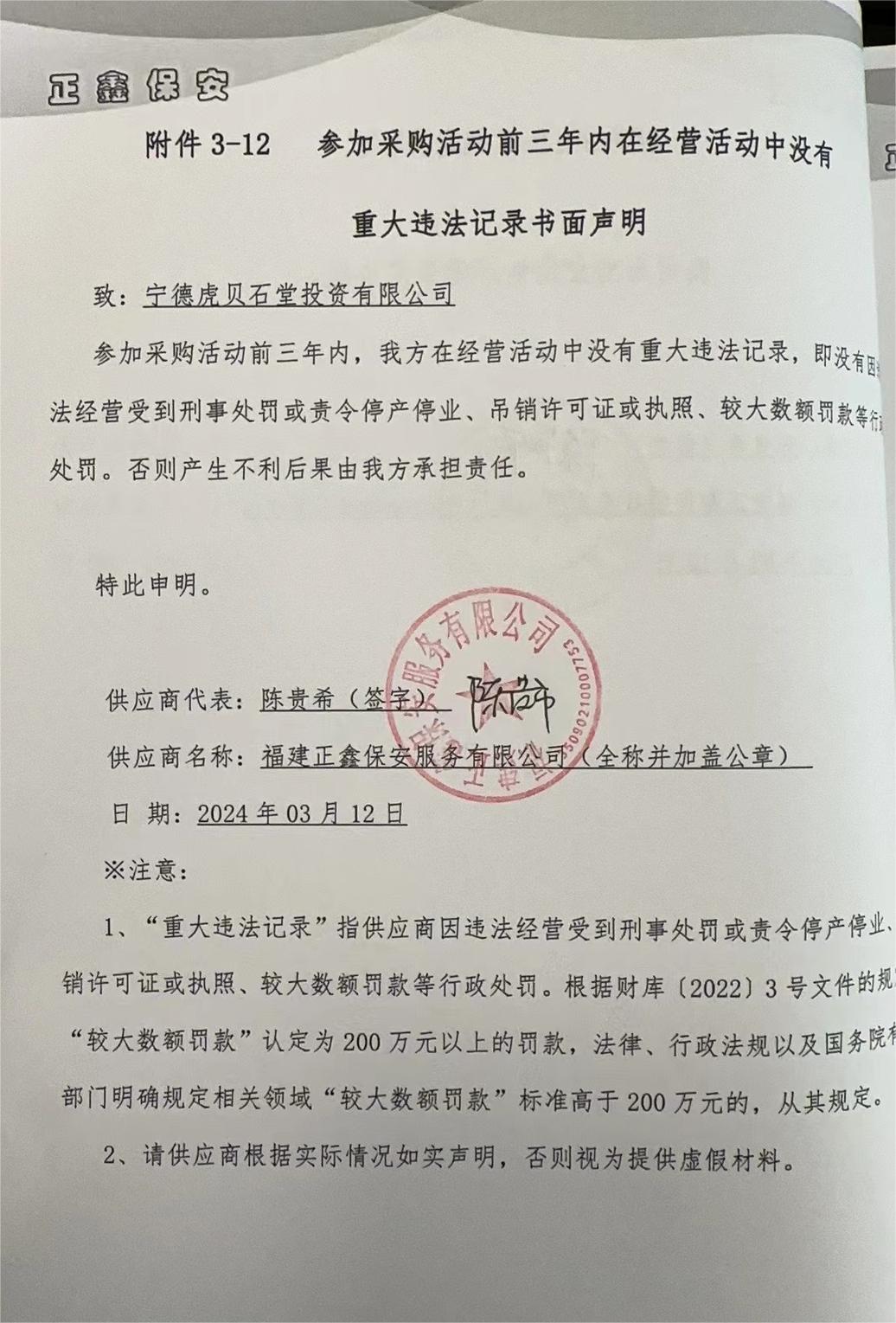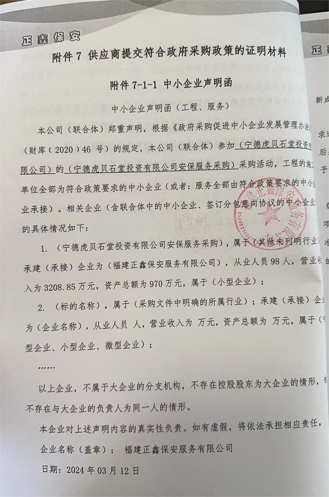 二、項目名稱:寧德虎貝石堂投資有限公司安保服務(wù)采購