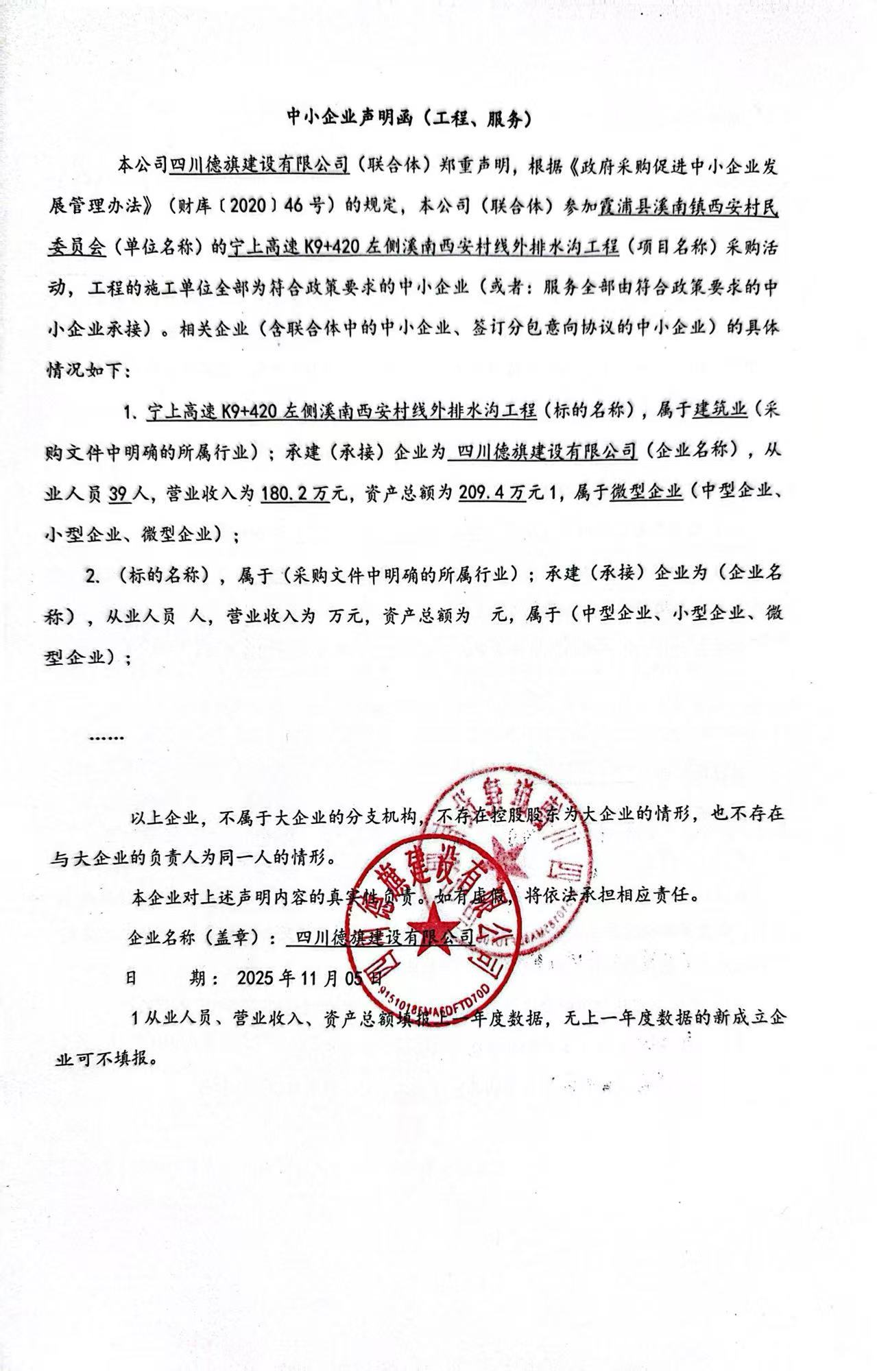供應商名稱:四川德旗建設有限公司