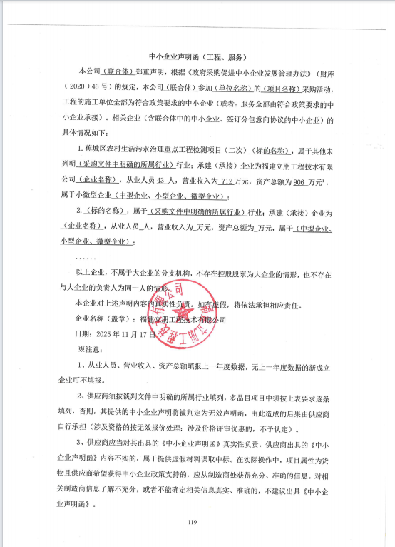 蕉城區(qū)農村生活污水治理重點工程檢測項目(二次) |